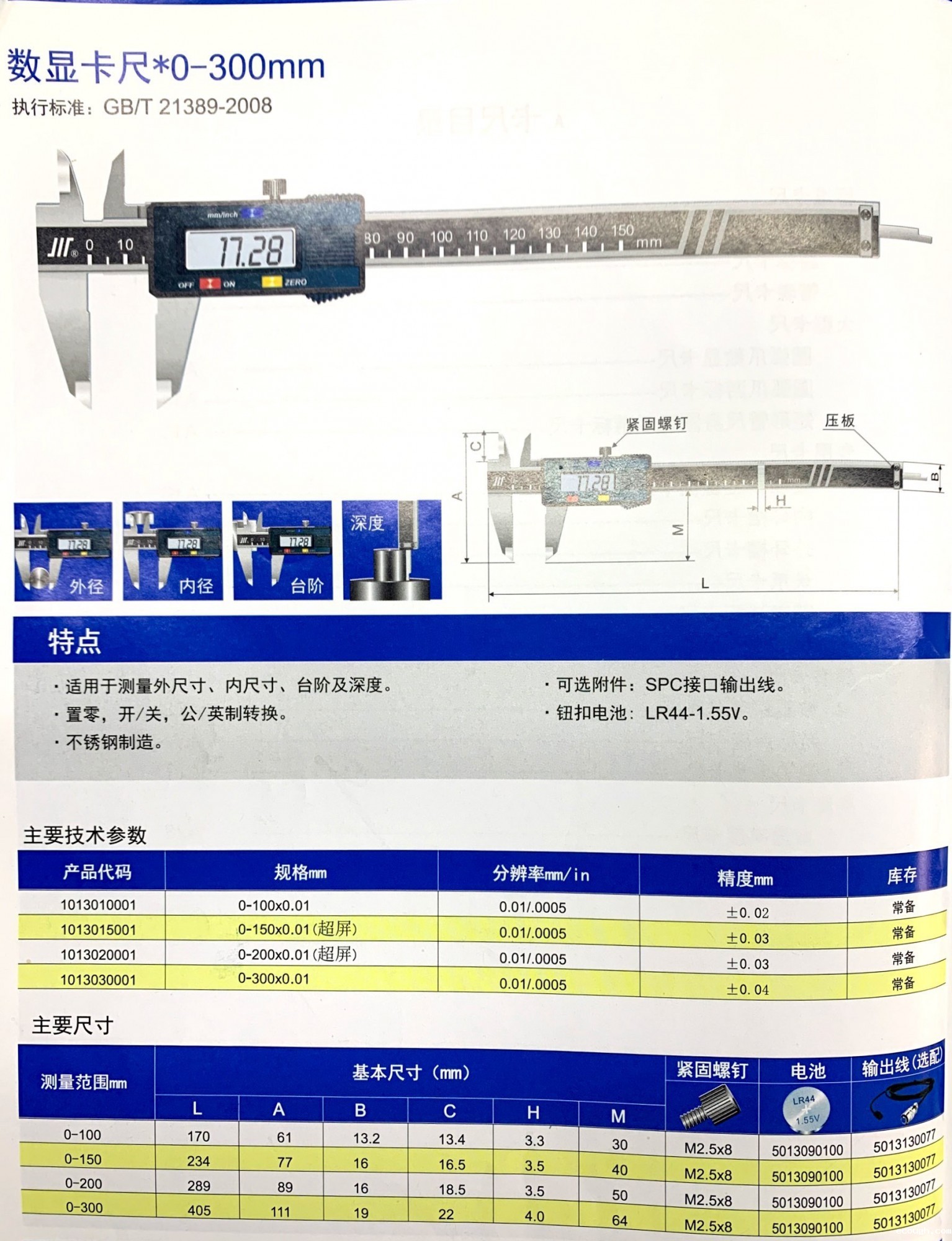 测量范围:0-100MM / 0-150MM / 0-200MM /0-300MM