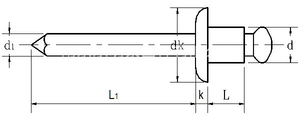 材质、等级:(钉芯+钉帽)碳钢+碳钢、碳钢+铝合金、铝合金+铝合金、碳钢+不锈钢、不锈钢304+不锈钢304